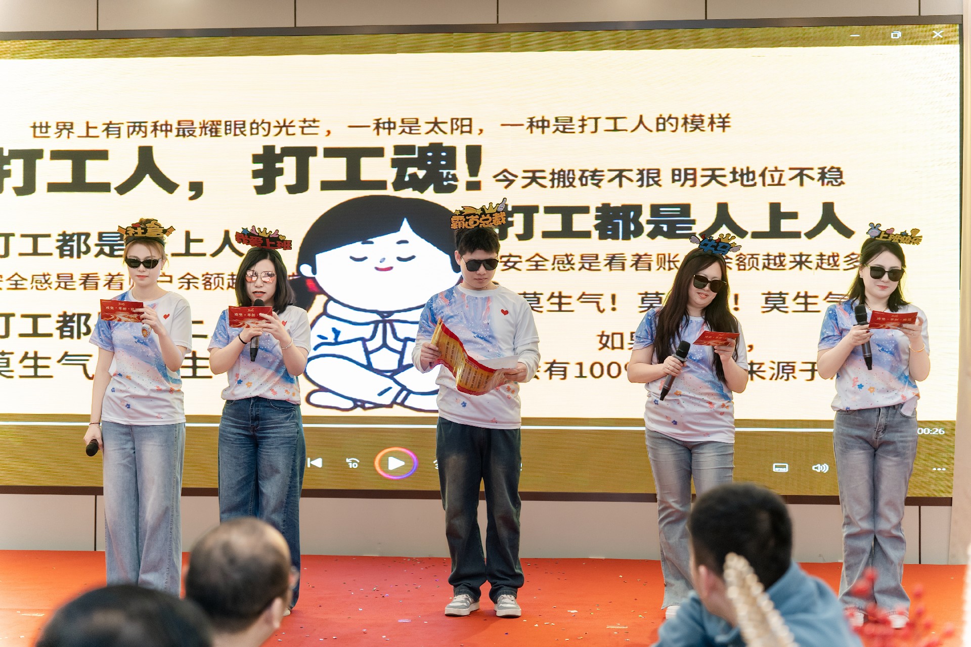晚会环节精彩不断。各部门员工及家属带来了吉他弹唱、三句半、军体拳、大合唱、拉丁舞等丰富多彩的节目,现场掌声与笑声交织。《马到成功》互动游戏与多轮幸运抽奖更是将气氛不断推向高潮。